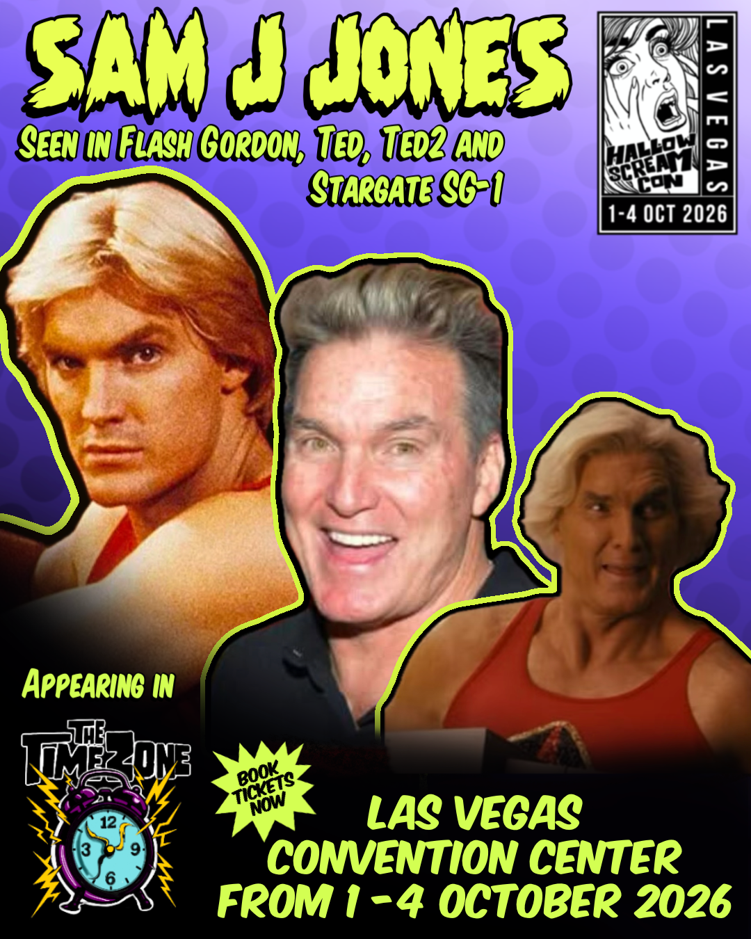 We are beyond honoured to welcome Sam J. Jones... FLASH GORDON HIMSELF to HallowScreamCon, appearing in THE TIME ZONE for an unforgettable celebration of nostalgia, heroism, and pop culture history.