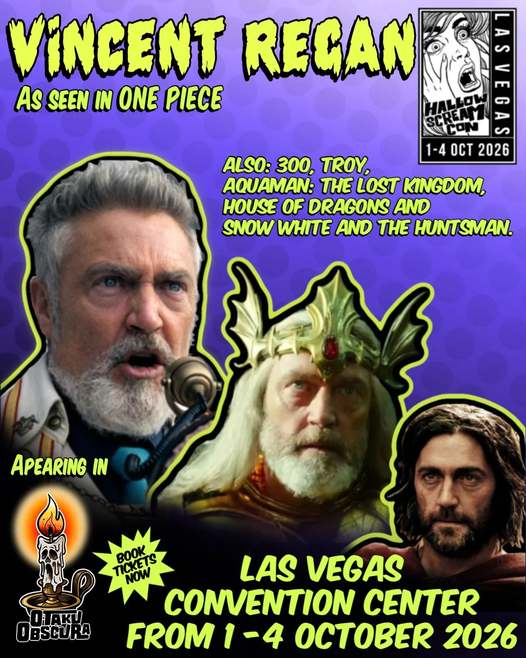 We are very proud to welcome Vincent Regan to HallowScreamCon, appearing in OTAKU OBSCURA as part of our ONE PIECE Cast and Crew celebrations.