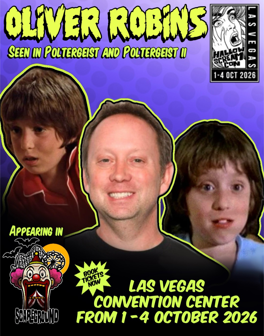 We are proud to welcome Oliver Robbins to HallowScreamCon, the unforgettable Robbie Freeling from the horror classic franchise, Poltergeist.
